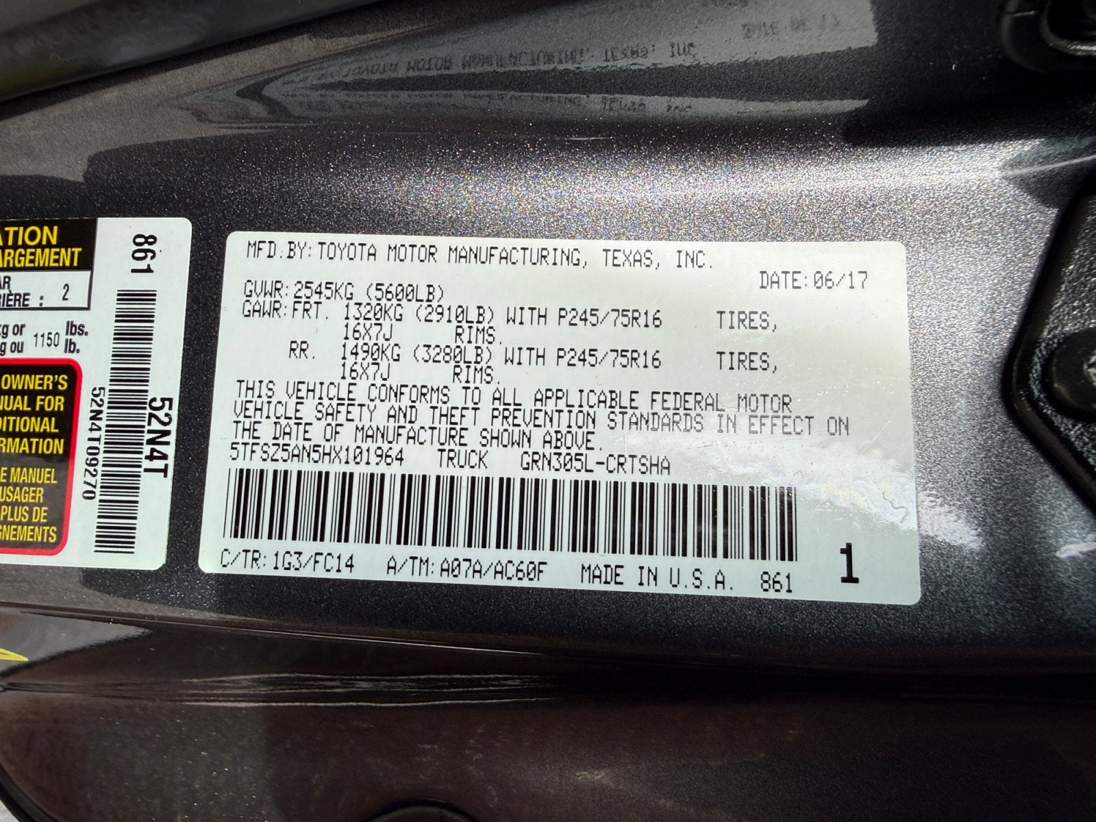 - Front Tire Size: P245/75SR16