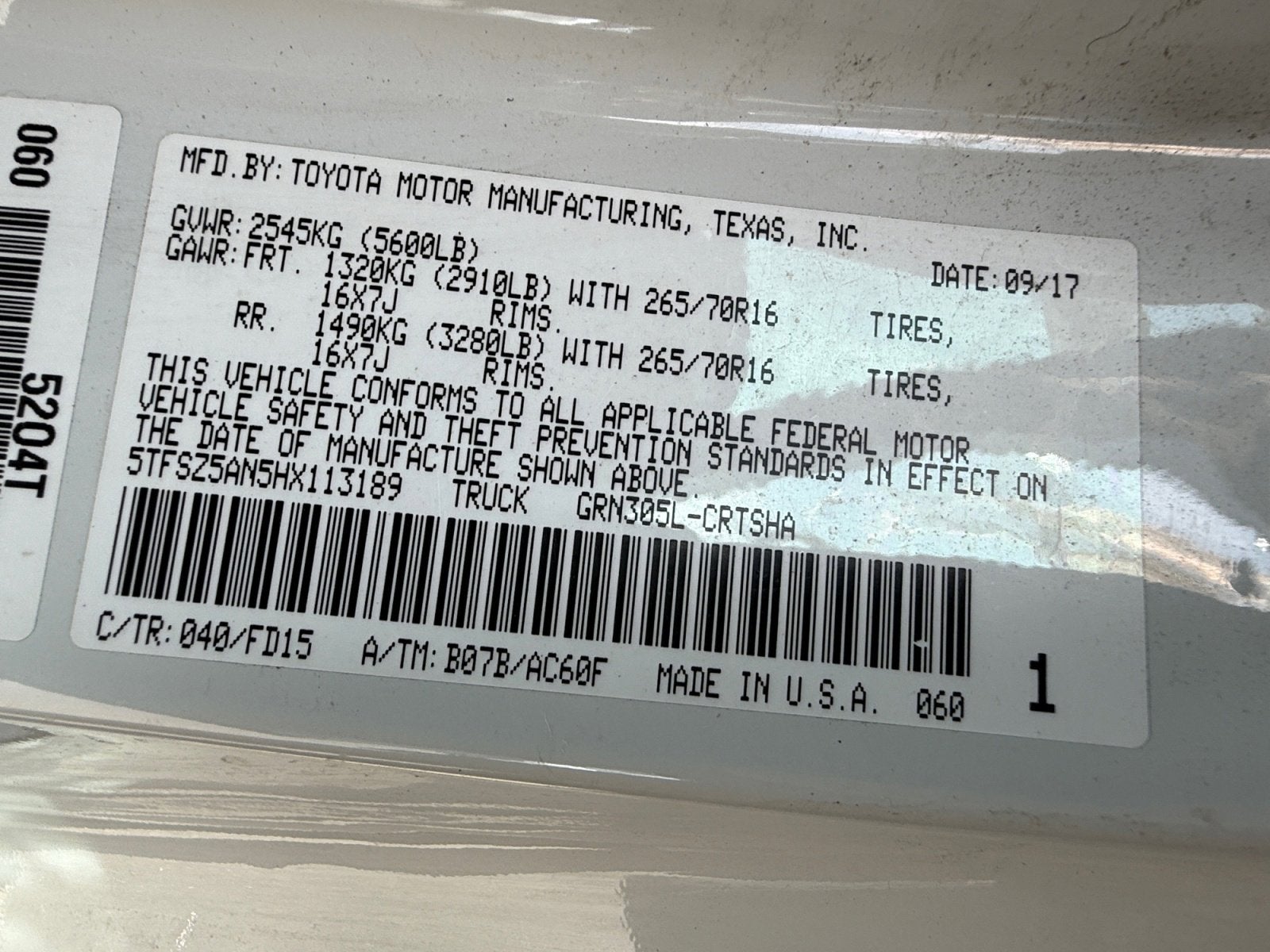 - Front Tire Size: P265/70SR16