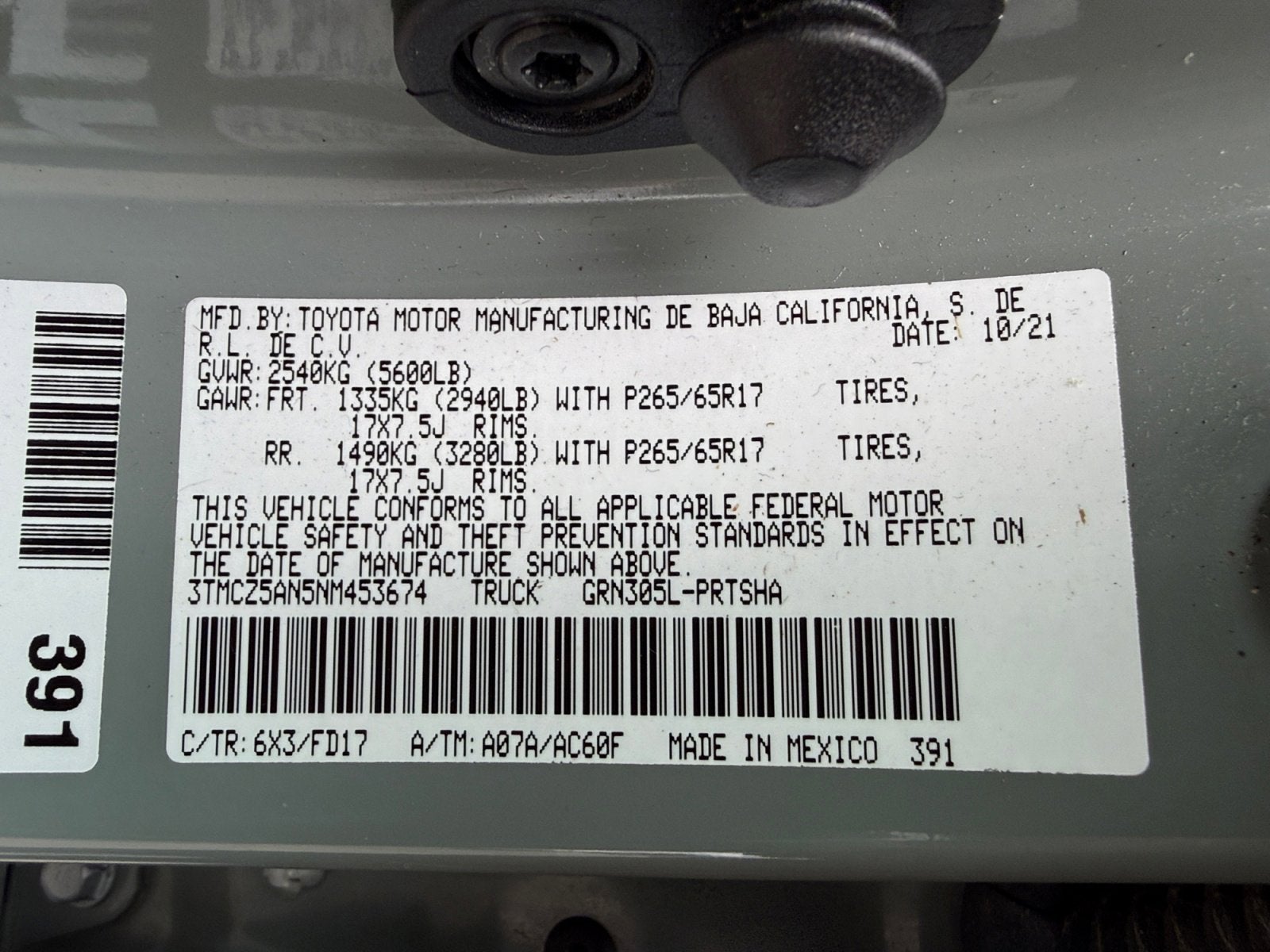 - Front Tire Size: P265/65SR17