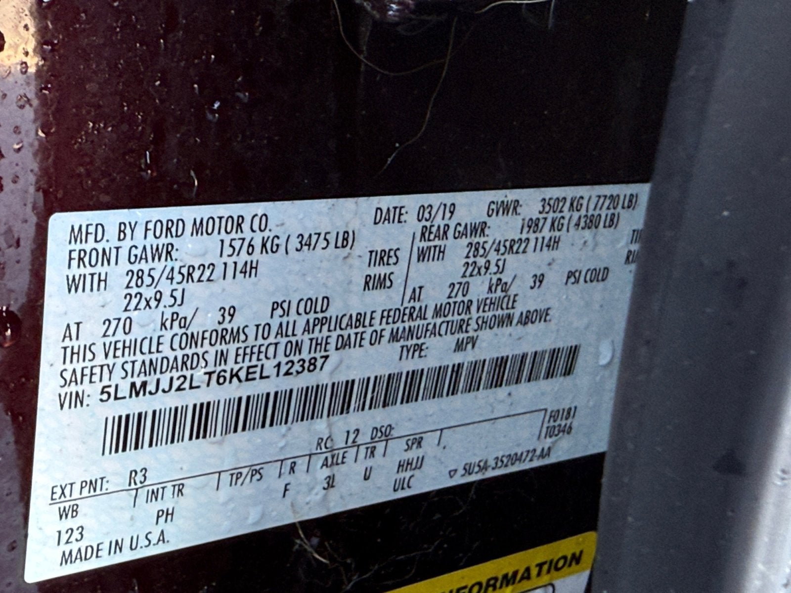 VIN: 5LMJJ2LT6KEL12387