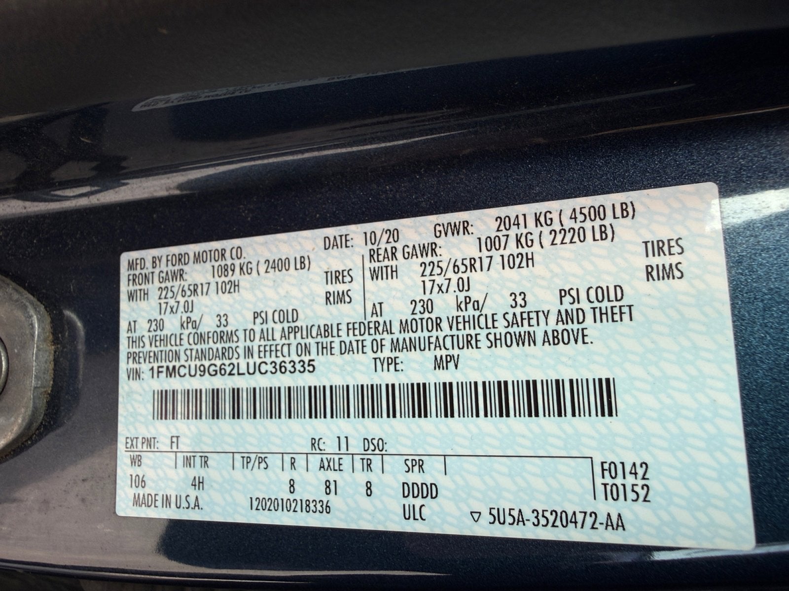 - Vehicle Name: Ford Escape