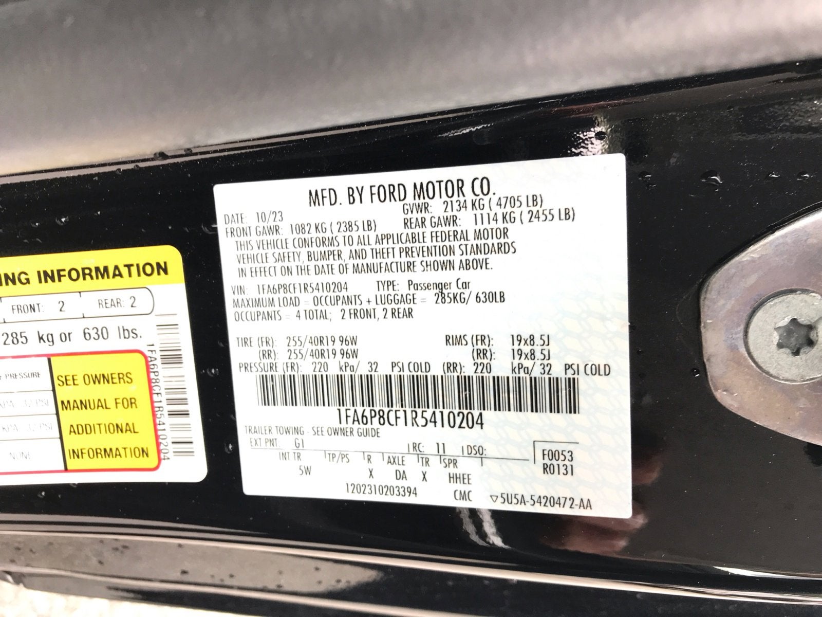 - Vehicle Name: Ford Mustang